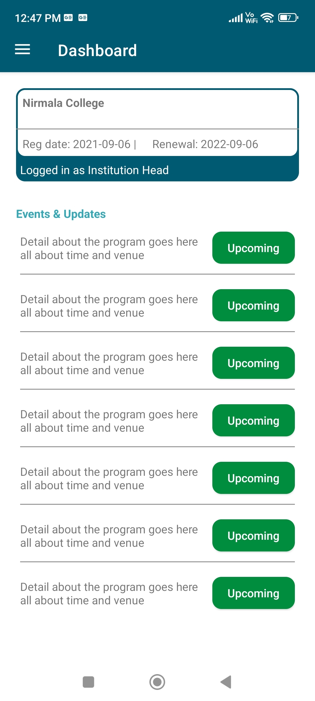 - Head of Institution : Ramachandra AK